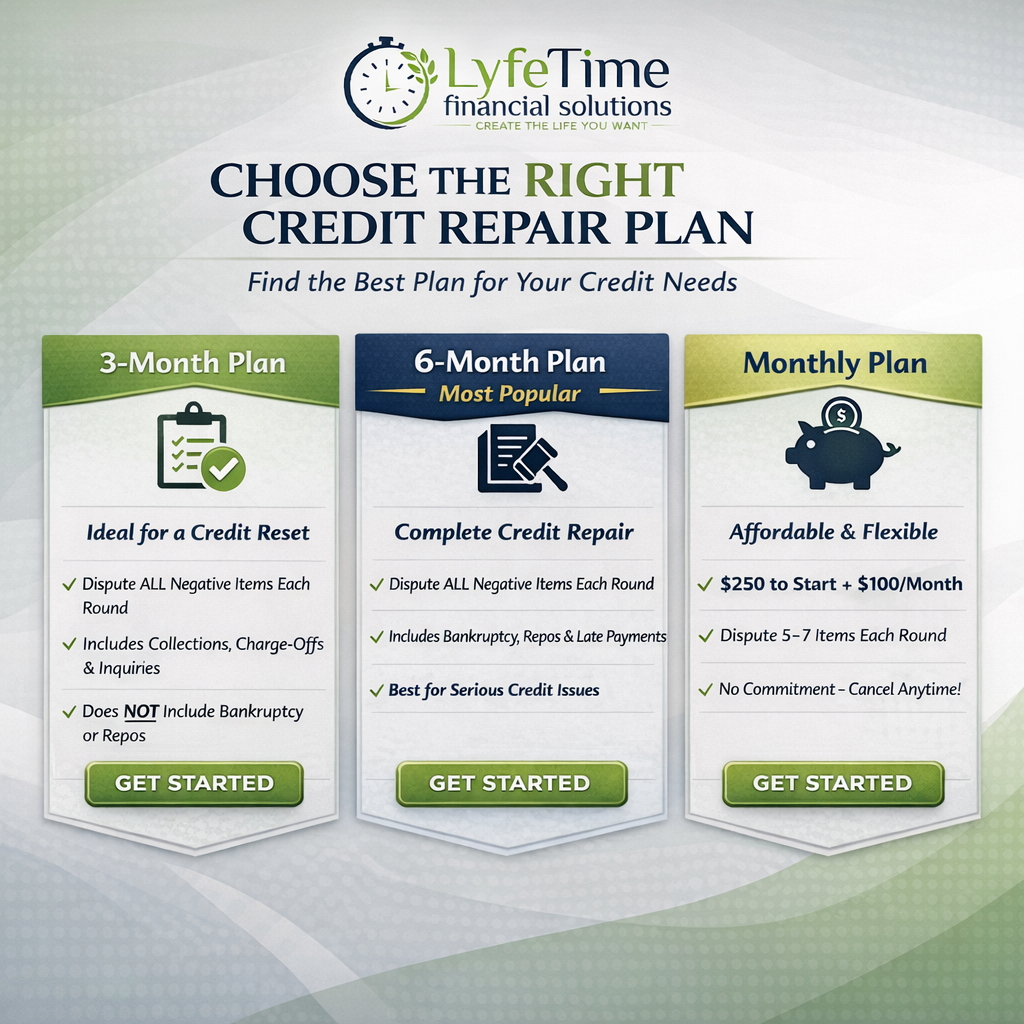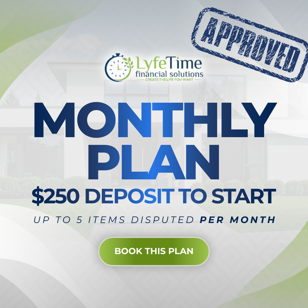 *Monthly plan allows us to work on your credit until fully repaired. No commitment! You can cancel or stop services whenever you want. No set amount of months contract or obligation.